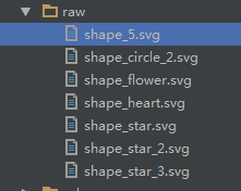 則:這裡一個app:svg_raw_resource="@raw/shape_star_3" 這裡就是指定圖片形狀為res/raw文件夾下的哪一個