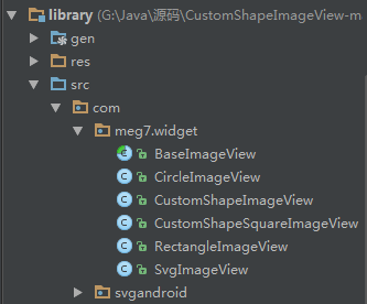 源碼中CustomShapeImageView.java看了下源碼是默認顯示圓形圖片的ImageView,裡面有圓形,方形,自定義形,看情況使用了,個人感覺,以上的幾個使用起來就足夠了。