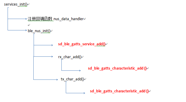 在main函數的初始化過程中有一個services_init();這個函數的內部就是添加服務,添加特征值等代碼。