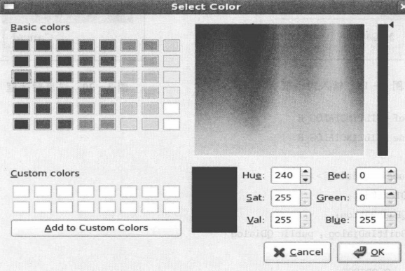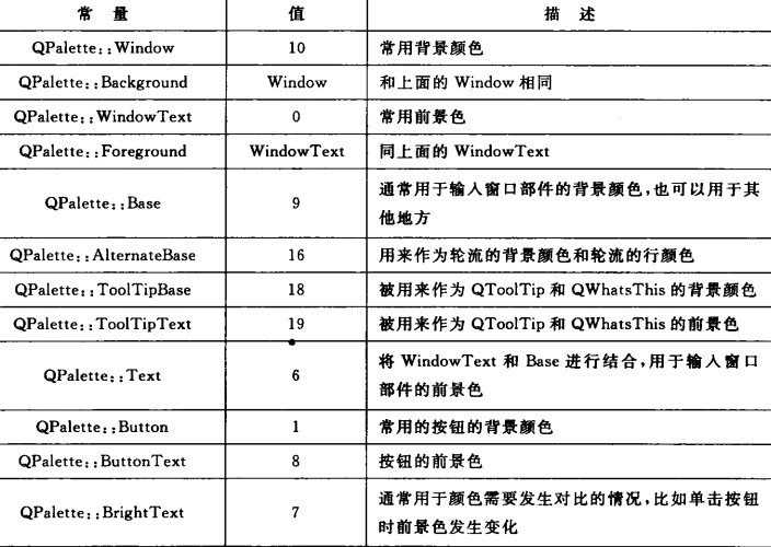 - QColor color = QColorDialog::getColor(palette.color(QPalette::Text), this);