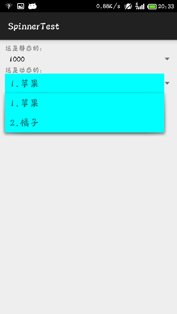 /*靜態的顯示下來出來的菜單選項,顯示的數組元素提前已經設置好了