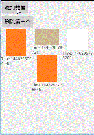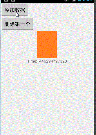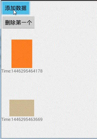1 <LinearLayout xmlns:android="http://schemas.android.com/apk/res/android" 2 xmlns:tools="http://schemas.android.com/tools" xmlns:app="http://schemas.android.com/apk/res-auto" 3 android:layout_width="match_parent" 4 android:layout_height="match_parent" 5 android:orientation="vertical" 6 tools:context="com.xqx.superapp.app.Android5Activity"> 7 8 <Button 9 android:text="添加一個數據" 10 android:layout_width="wrap_content" 11 android:layout_height="wrap_content" 12 android:onClick="btnAddItem" 13 /> 14 <Button 15 android:text="刪除第一個" 16 android:onClick="btnRemoveItem" 17 android:layout_width="wrap_content" 18 android:layout_height="wrap_content"/> 19 20 <android.support.v7.widget.RecyclerView 21 android:id="@+id/recycle_view" 22 android:layout_width="match_parent" 23 android:layout_height="match_parent" 24 > 25 </android.support.v7.widget.RecyclerView> 26 27 </LinearLayout>