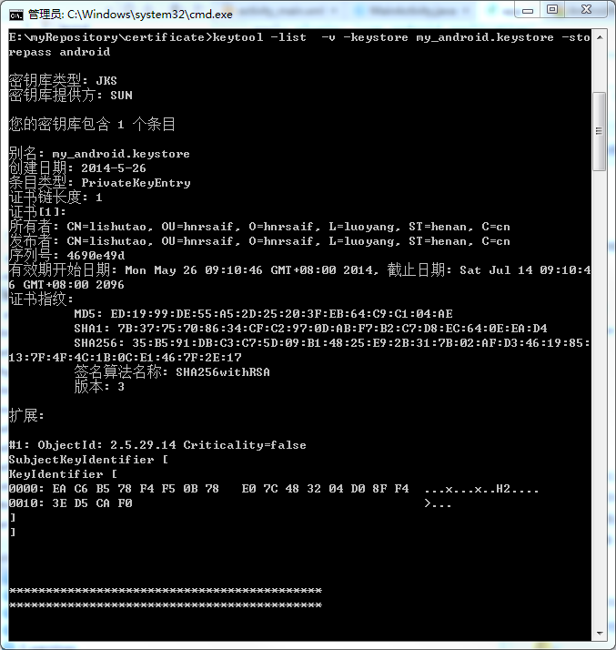 Android 查看自己的keystore的別名及相關信息,androidkeystore
