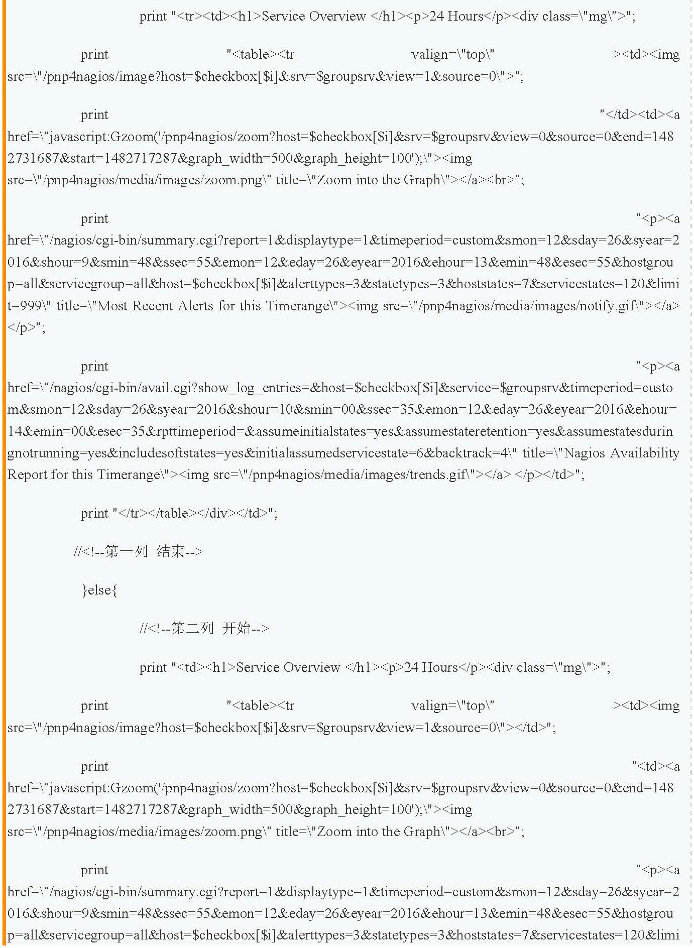 上述代碼中的出圖鏈接是調用的pnp4nagios默認的,其中的for循環實現的是出圖的排列方式是一行或多行兩列的方式,最終的效果圖如圖7所示