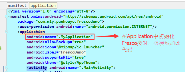 做完上面的工作後,需要在 AndroidManifest.xml 中指定 Application 類。