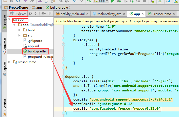 1 compile 'com.facebook.fresco:fresco:0.12.0'