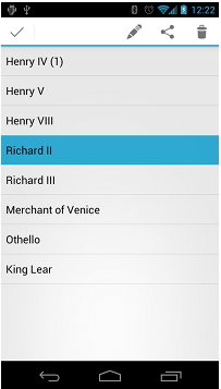 *:現在,當用戶通過長按選擇項目時,系統即會調用 onCreateActionMode() 方法,並顯示包含指定操作的上下文操作欄。