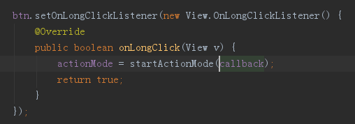 2:當需要顯示操作欄時(例如,用戶長按視圖),調用startActionMode()。比如: