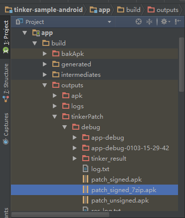 然後看到successful,這個時候在你項目的目錄裡就會有生成apk了,app\build\outputs\tinkerPatch\debug\