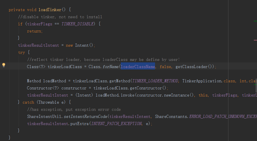 這代碼大致是反射調用TinkerLoader的tryLoad()方法拿到加載補丁結果,加載補丁包,反射調用同步周期,重置安全模式次數,大於等於三次會進入安全模式不再加載,一點點理解