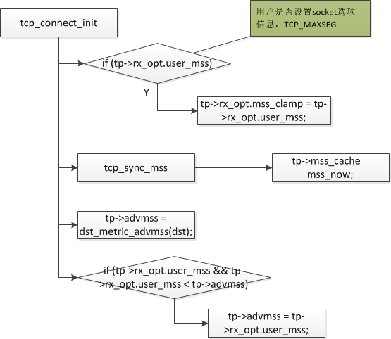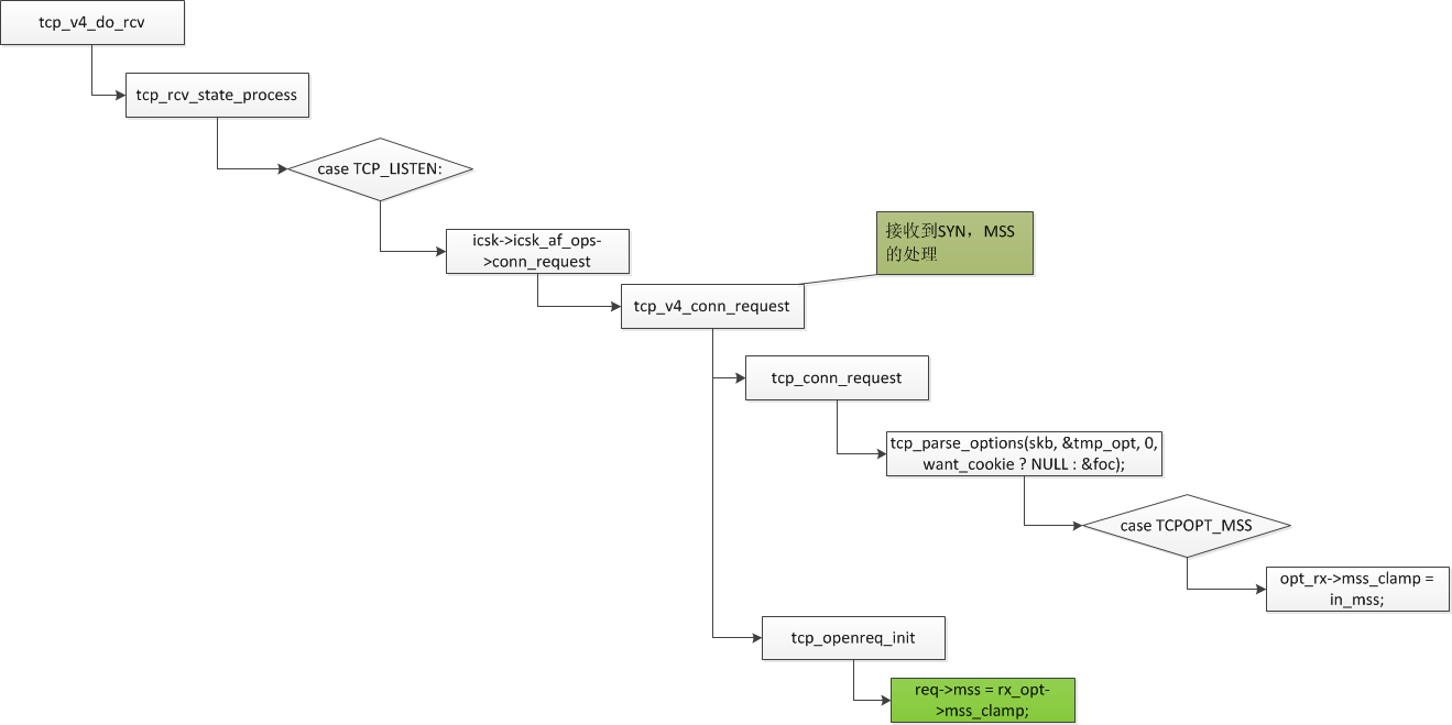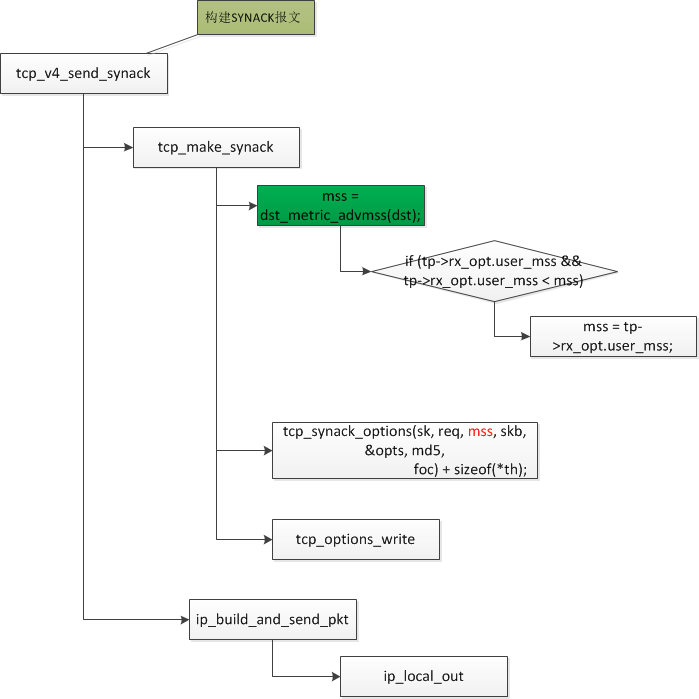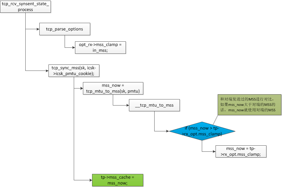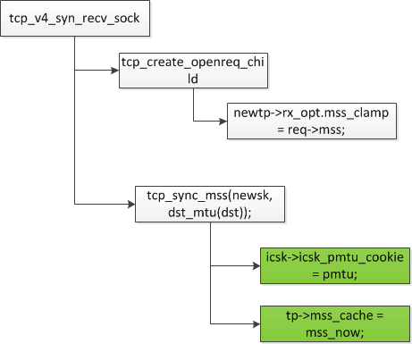 5) Client接收到SYN+ACK,根據Server端發送過來的mss計算mss_cache