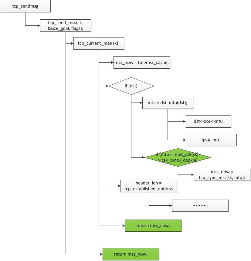 7) 後續數據的發送,根據mss_cache的值進行填充,但是這裡也有判斷以防PMTU發生變化
