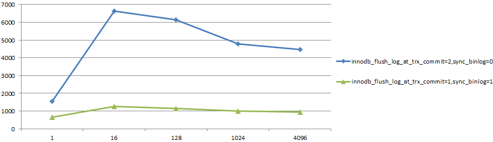 對更新同一行這樣無法有效並行的場景,"雙1"對性能的影響非常大。