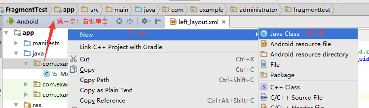 這裡我們演示將右邊側的fragment(right_layout.xml)通過java代碼添加到主布局viewgroup。