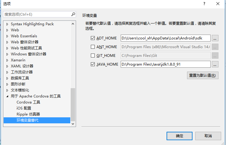 注意:要預先設定好VS2015 adroid的參數【sdk,建議安裝adroidstudio2,牆內更新SDK的速度也是飛快!】