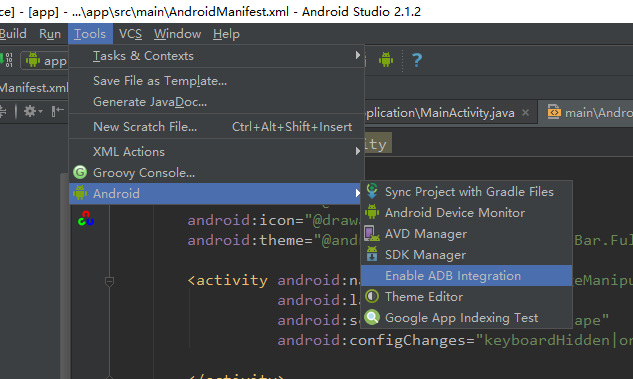 解決如圖:Enable ADB Integration勾選一下