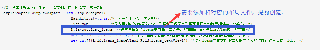 R.layout.list_items, /*設置具體某個items的布局,需要是新的布局,而不是ListView控件的布局*/
