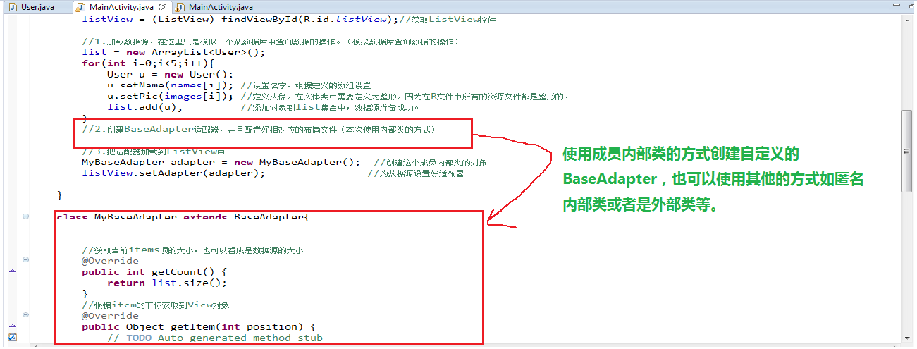 MyBaseAdapter adapter = new MyBaseAdapter(); //創建這個成員內部類的對象
