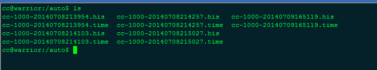 兩個配置文件被當做script命令的參數。這兩個文件可以隨便命名,這裡用demo.time和demo.his。其中demo.time用於存儲時序信息,描述每一個指令在何時運行;demo.his用於存儲命令信息輸出。-t選項用於將時序數據導入stderr。2>用於stderr重定向到demo.time。