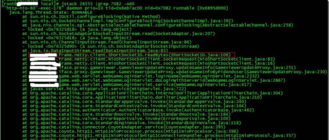 5、最後打印線程的堆棧信息:
