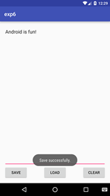 • 在編輯區域輸入任意內容,點擊 SAVE 按鈕後能保存到指定文件(文件名隨意). 成功保存後,彈 出 Toast 提示。見 Figure 8。