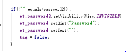 獲取本地存儲的密碼,密碼不為空就隱藏其中一個密碼框(保證完成創建密碼後,退出應用再進入應用,則只呈現一個密碼輸入框):