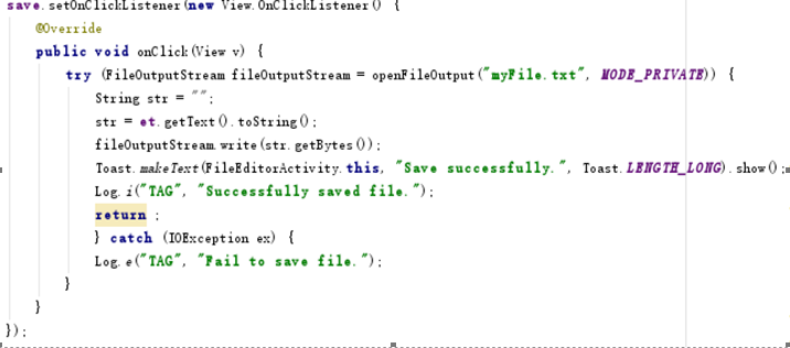 在文件編輯的java類中,我們向Internal Storage 寫入文件。