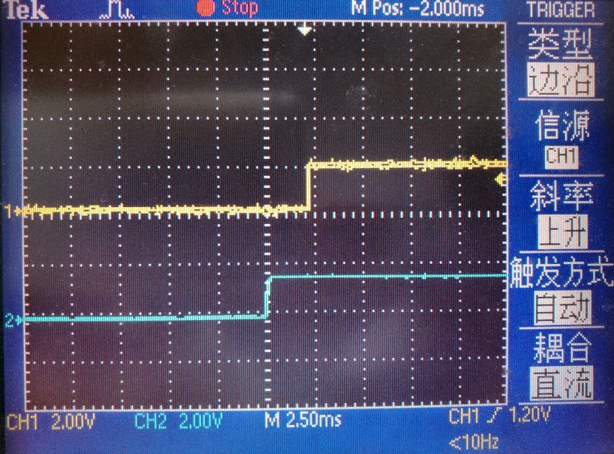 以上代碼執行結果如下圖所示,可以看到,兩個IO被拉高前後相差約2.5ms。
