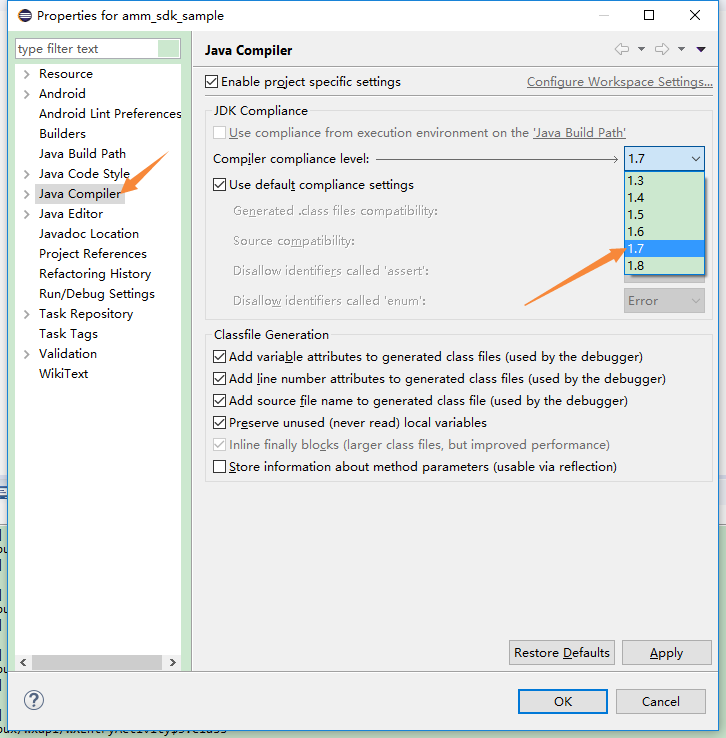 我的原來是1.8,換成1.7點擊Apply—ok。解決。