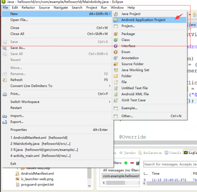 然後找到src下的com.example.helloworld的MainActivity.java