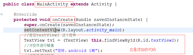 進去後在onCreate的方法裡面加上以下代碼,然後保存