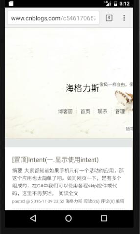 intent.setData(Uri.parse("http://www.cnblogs.com/c546170667"));//通地URI來進行打開URL