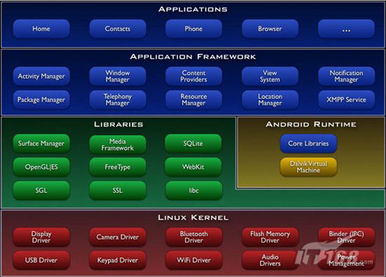 Android其本質就是在標准的Linux系統上增加了Java虛擬機Dalvik,並在Dalvik虛擬機上搭建了一個JAVA的application framework,所有的應用程序都是基於JAVA的application framework之上。