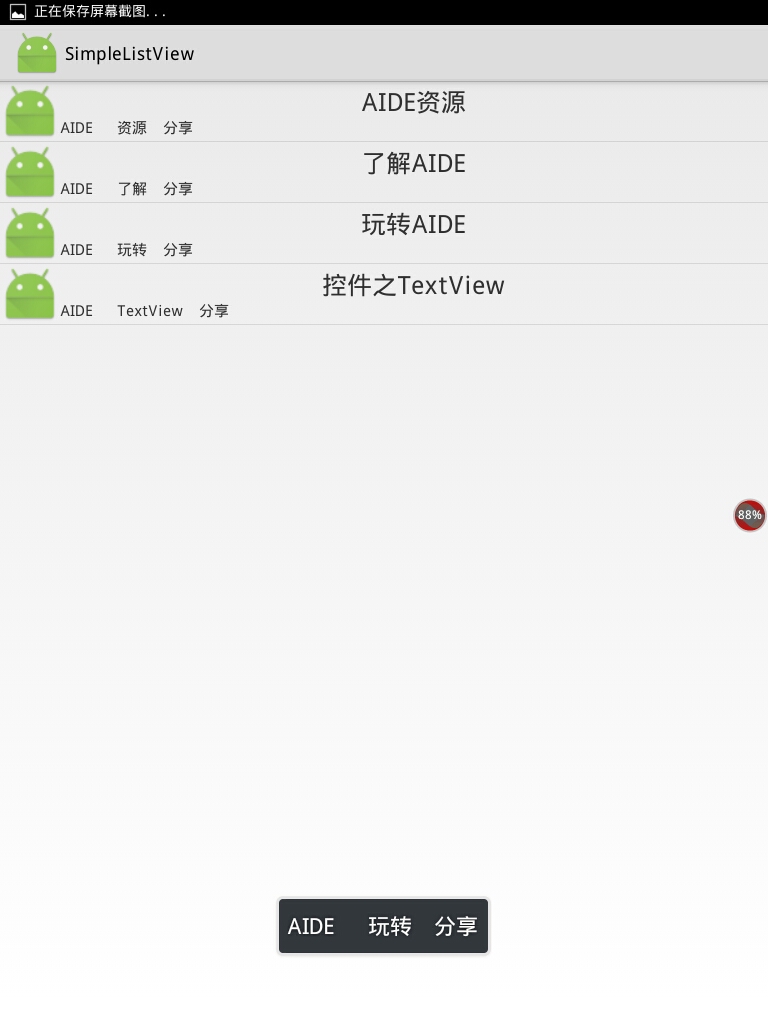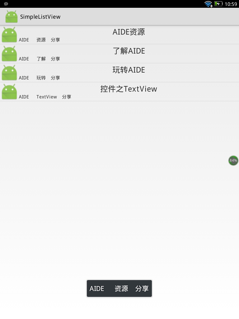 Toast.makeText(MainActivity.this,"AIDE 了解 分享",Toast.LENGTH_SHORT).show();
