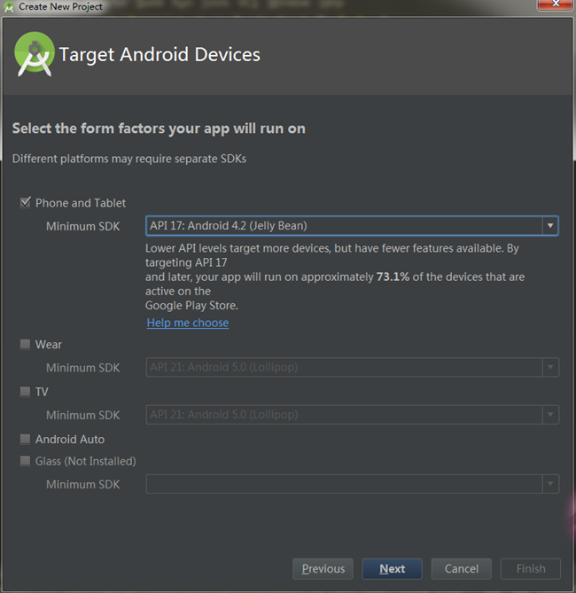 (2)next-->可以選擇創建的工程的版本-->如果對版不了解,可以點擊help me choose: