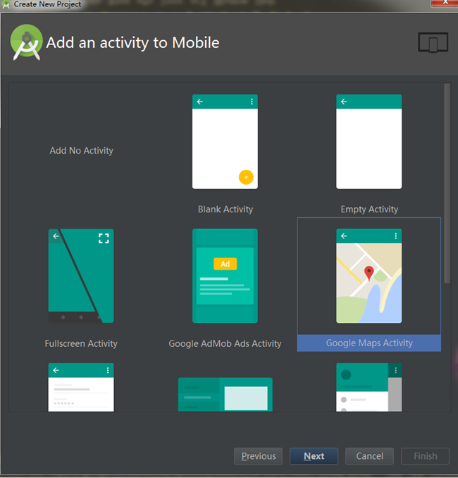 (4)選擇版本後next-->進入選擇主Activity樣式界面,下面只是列出幾種,樣式很多: