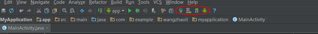 5.在Studio菜單欄的右邊有這樣幾個常用的功能,如圖分別是 Gradle同步、AVD Manager、SDK Manager、DDMS: