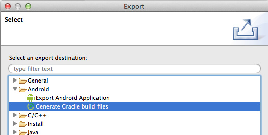 首先,我們在Eclipse 將項目導出為Gradle 項目。