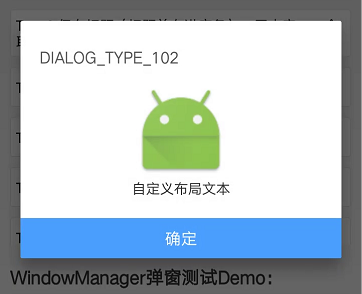WindowManager方式彈窗的設計思想與Dialog彈窗方式一樣的,只是底層用來顯示View的地方不一樣,本文不具體講,源碼部分是包含的。