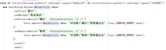 if (editTextUsername.getText().toString().equals("Android") && editTextPassword.getText().toString().equals("123456")) {