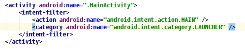 然後在注冊文件中注冊,將該 Activity 設置為應用啟動時第一個加載的 Activity