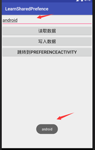 讀操作:使用preference對象通過getstring函數,第一個參數為我們寫操作時設定的KEY值,第二參數為數據不存在時,默認值