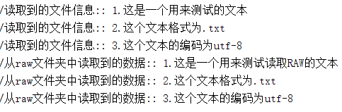 62 Log.d("從raw文件夾中讀取到的數據:",out);