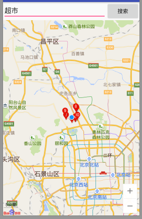 1 <LinearLayout 2 android:layout_width="match_parent" 3 android:layout_height="wrap_content"> 4 <EditText 5 android:layout_width="0dip" 6 android:layout_height="wrap_content" 7 android:layout_weight="1" 8 android:hint="請輸入搜索地址" 9 android:id="@+id/etsearch"/> 10 <Button 11 android:layout_width="wrap_content" 12 android:layout_height="wrap_content" 13 android:text="搜索" 14 android:id="@+id/btnsearch"/> 15 </LinearLayout>