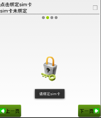 當checkbox沒有被選定的時候,也即是sim卡沒有被選定,這個時候點擊“下一頁”就會彈出吐司提醒,邏輯代碼如下: