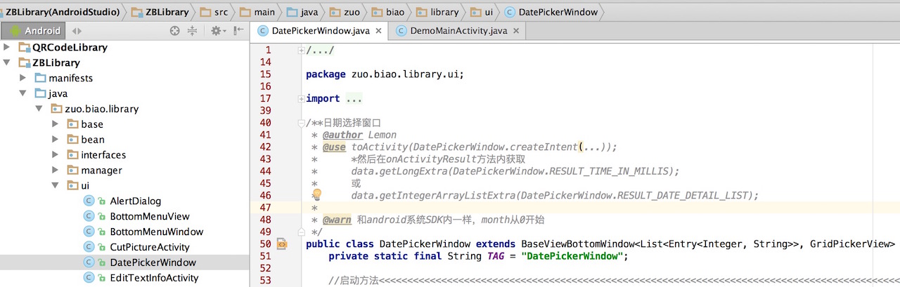 如果你連2-3這幾步都懶得做,把ZBLibrary裡的DemoMainActivity.java 復制>粘貼>改名>改代碼 就可以啦!
