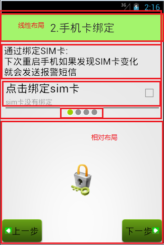 android:text="通過綁定SIM卡:\n下次重啟手機如果發現SIM卡發生變化\n就會發送報警短信" />