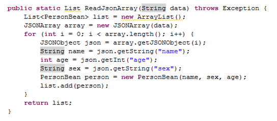 在安卓環境下解析JSON數據有兩種方式,一種是自定義方法根據數據結構分層解析,另一種是用開源框架。自定義方法進行解析時,又可以分為對象解析、數組解析、綜合解析。對象解析較為簡單,先創建JSON對象,用對象的GetXxx()的方法獲取對應的值,然後存儲在集合中,即獲取到JSON數據。數組解析先通過JsonArray對象獲取JSON對象,然後參照對象解析的方法。綜合解析則是在上述兩種解析基礎上完成的。根據JSON數據的結構,按照順序一次獲取JSON對象和JsonArray對象知道獲取到所需數據。用開源框架進行解析基本原理類似,只不過需要提前進行導包,並創建一個方法類來調用包裡的內容。
