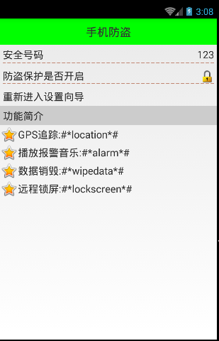 2,手機防盜功能列表界面