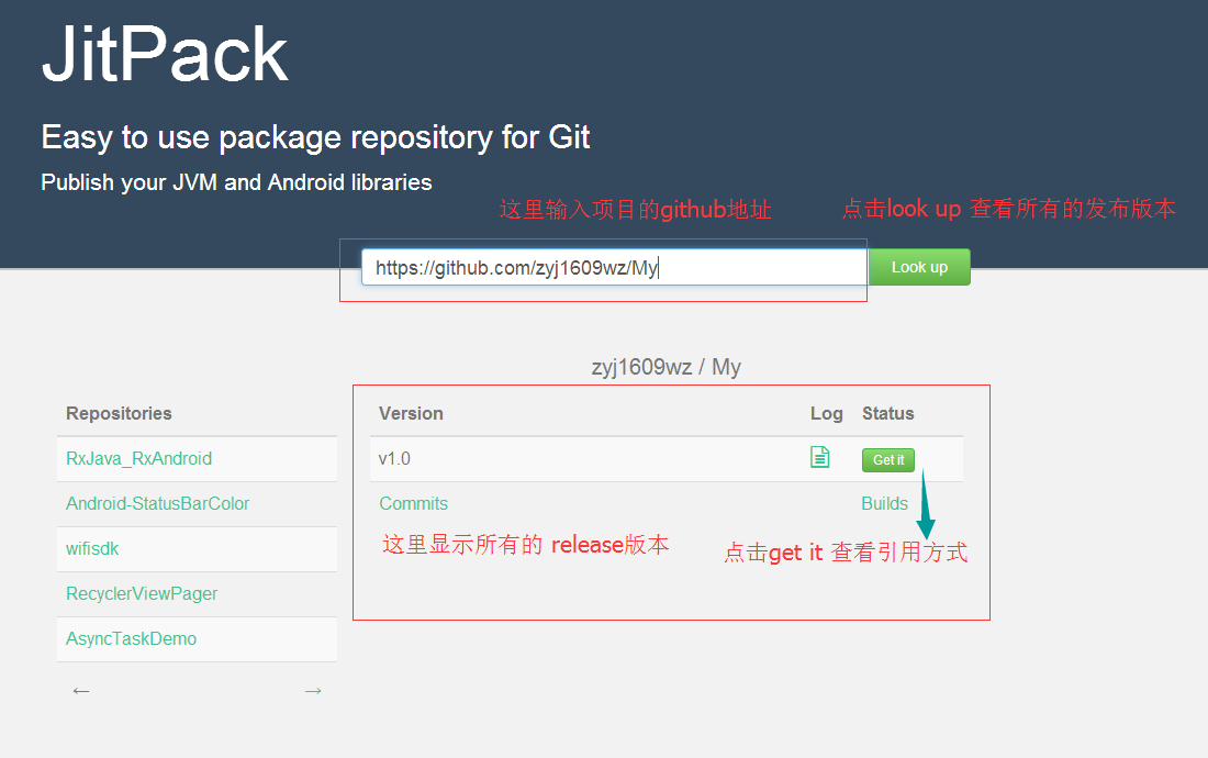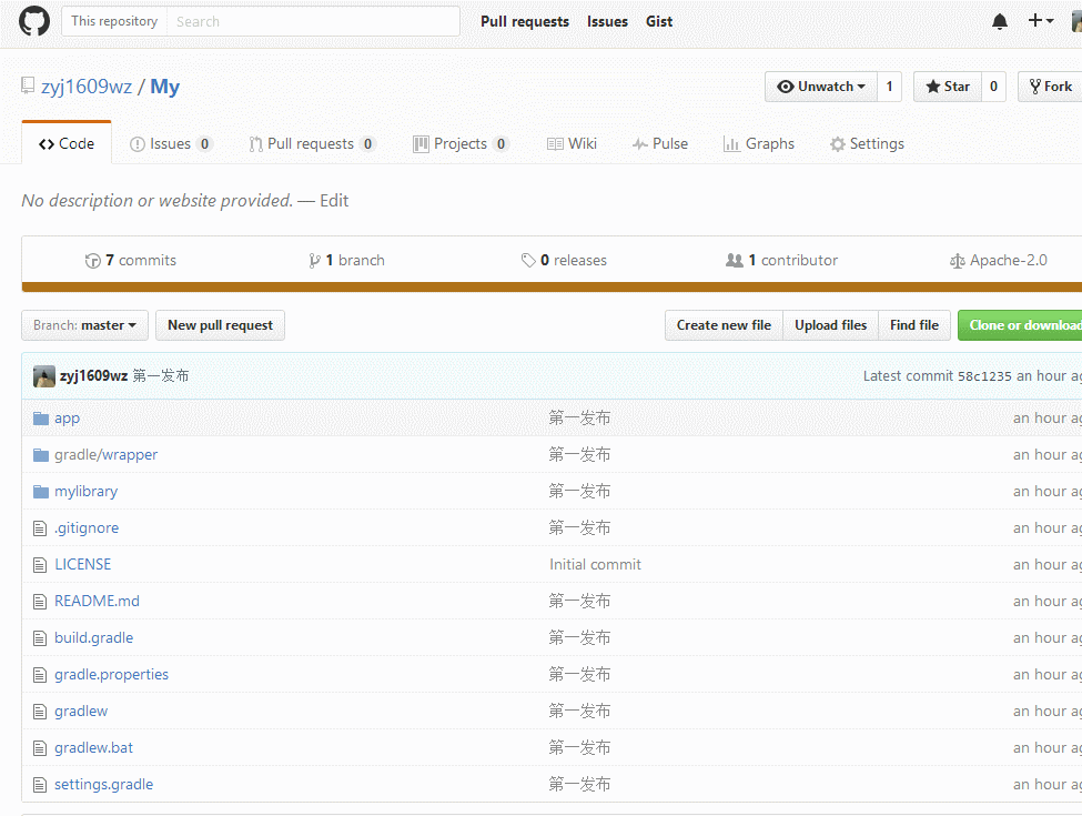 注意這裡的 zyj1609wz 是我的github用戶名, My 是我的github 倉庫的名字,v1.0 是我創建的release版本的名字。所以我們如果想要開源庫引用名稱比較好看一點,就需要你會起一個好名字,你要起一個好聽的github用戶名,一個好聽的倉庫名,一個清晰的版本號。